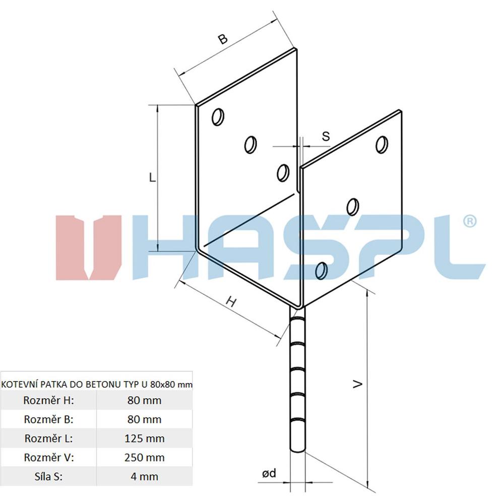 - Náš sklad - Kotevní patka do betonu typ U 80 x 80 mm 4 mm