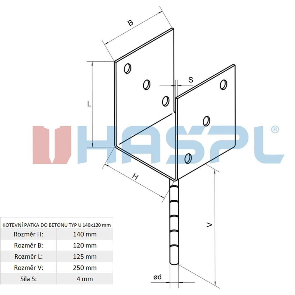 - Náš sklad - Kotevní patka do betonu typ U 140 x 120 mm 4 mm